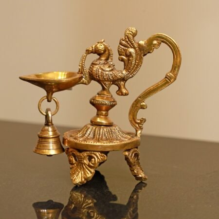Traditional Brass Peacock Diya with Bell for Pooja and Décor