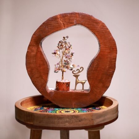 Handcrafted Wooden Frame with Crystal Tree and Brass Deer adorned with LED Lights