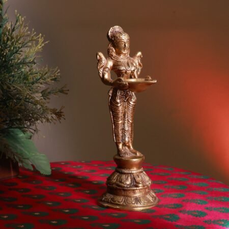 Handcrafted Brass Standing Goddess Diya with Offering Bowl