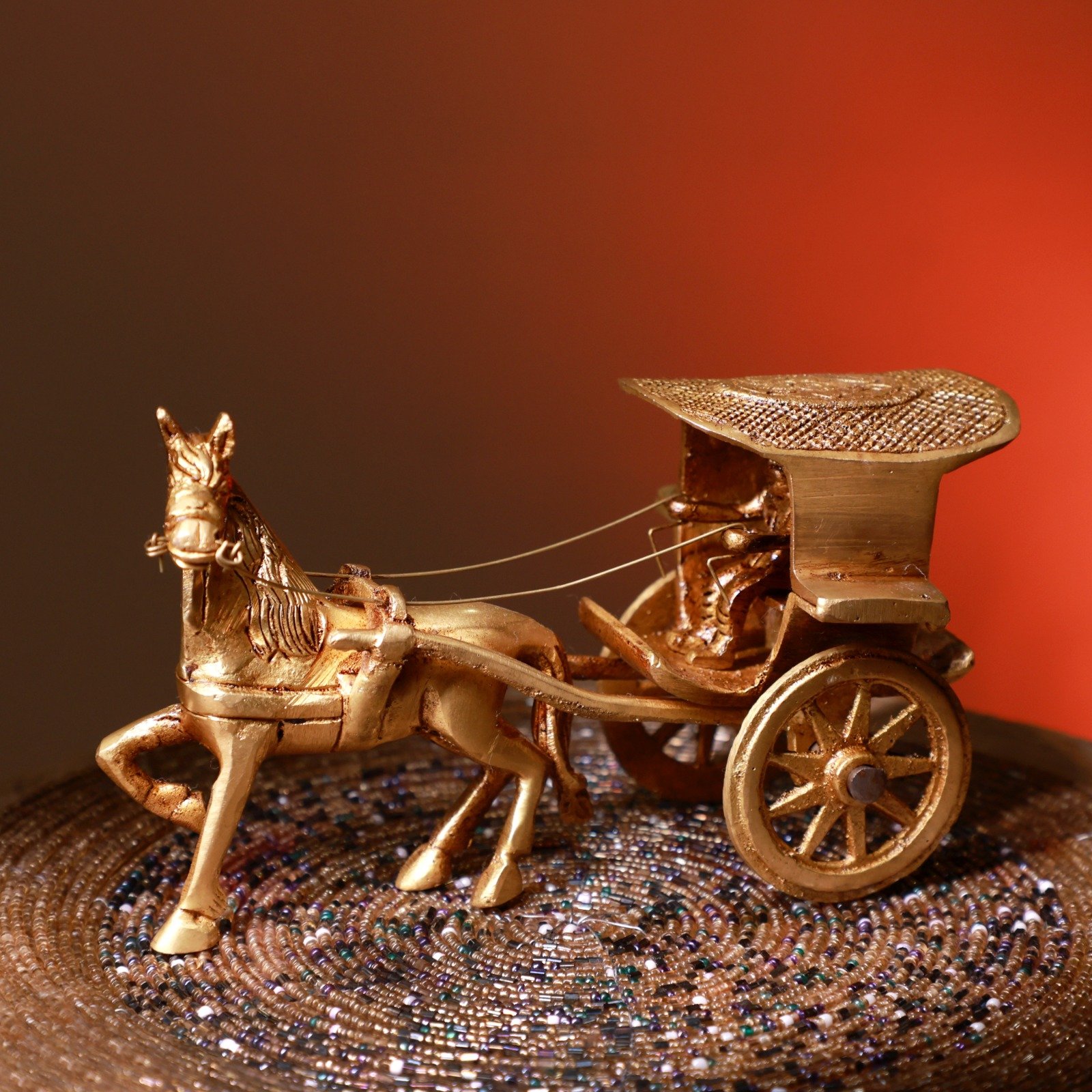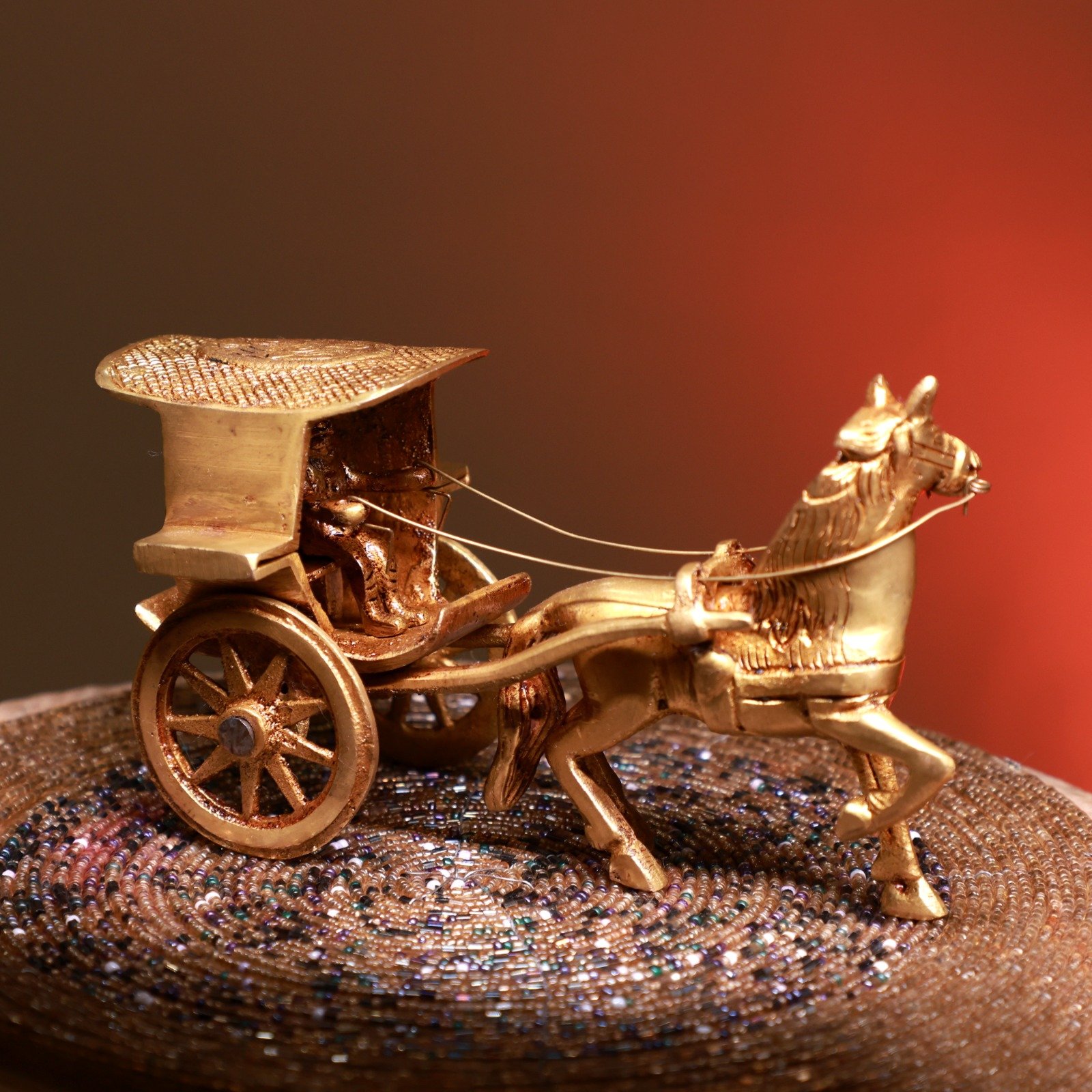 Handcrafted Brass Horse Cart Figurine with Traditional Detailing